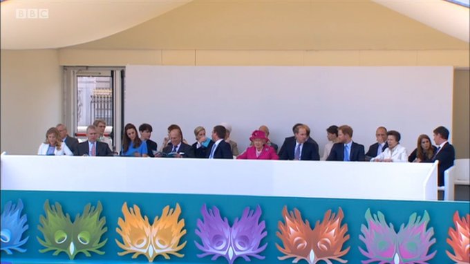 Następnie dołączyli do reszty rodziny, gdzie zasiedli w specjalnej loży przy pomniku królowej Wiktorii z której mieli idealny widok na wszystkie przygotowane przedstawienia.